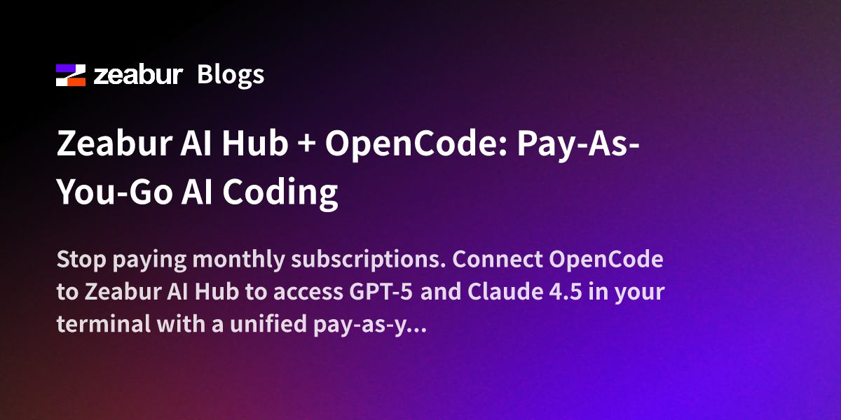 Zeabur AI Hub + OpenCode: Pay-As-You-Go AI Coding